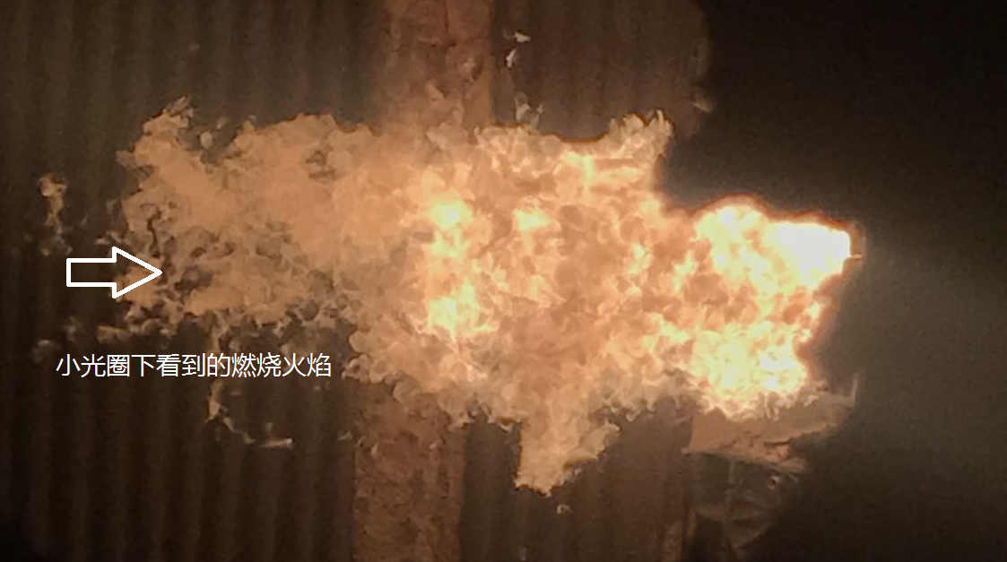 空氣霧化油槍燃燒的火焰,99%的燃燒率。
